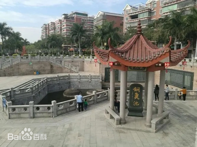 同安铜鱼池位于福建省厦门市同安区双溪路511号,地处东溪与西溪交汇口北侧。该池因池中四块天然岩石(其中三块形似游鱼、色如古铜)得名,南宋绍兴二十三年至二十八年(1153-1158年)朱熹任同安主簿时命名"铜鱼"并建池,留有"铜鱼水深,朱紫成林"谶语,成为古代科举文运与农业丰歉的象征,同安因此别称"铜鱼城" 。池畔金车石群现存朱熹"中流砥柱"楷书题刻 。