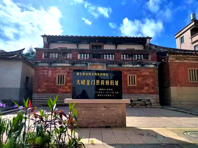 “金门县政府旧址”为12幢典型的闽南红砖古厝建筑群,包括当年县政府总部、文书房、保安队队址、县政府会议旧址、县政府盐兵楼、国民党金门县党部、国民党金门县党部书记处共7处12栋建筑,总建筑面积2698.6平方米,以红砖建筑为主,大都是“燕尾式”和“马背式”。这些旧址分布都比较集中,相距都在百米内,大都是两层建筑,除了明清建造的之外,很多是民国建筑。虽经历炮火洗礼,但至今这片古厝建筑群仍基本保留完好,是两岸同胞共同抗日的重要史迹。