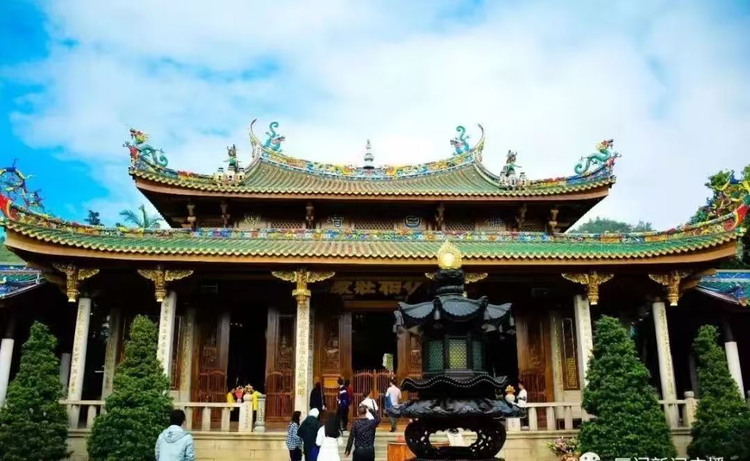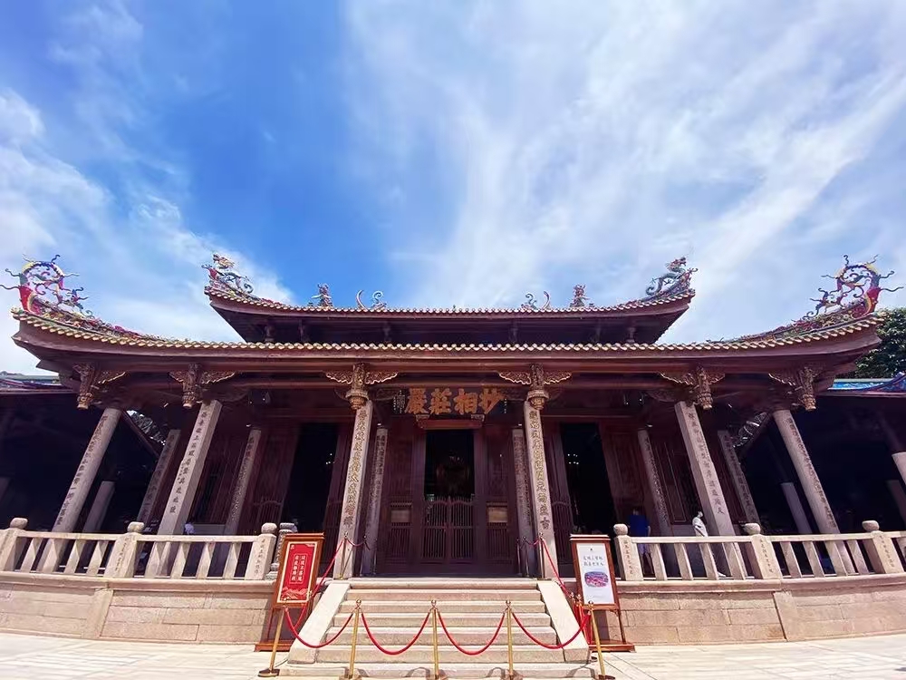 “厝顶有戏出”是流传在闽南民间的俚语,“厝顶”指的是屋顶,“有戏出”则是指屋顶上的色彩鲜艳、造型生动剪瓷雕装饰。南普陀寺正殿——大雄宝殿的屋脊呈弯月起翘,紫燕凌空,上面的“九鲤化龙”“麒麟奔走”“凤凰展翅”等图样,便是运用了剪瓷雕这一闽南民间传统手工技艺。