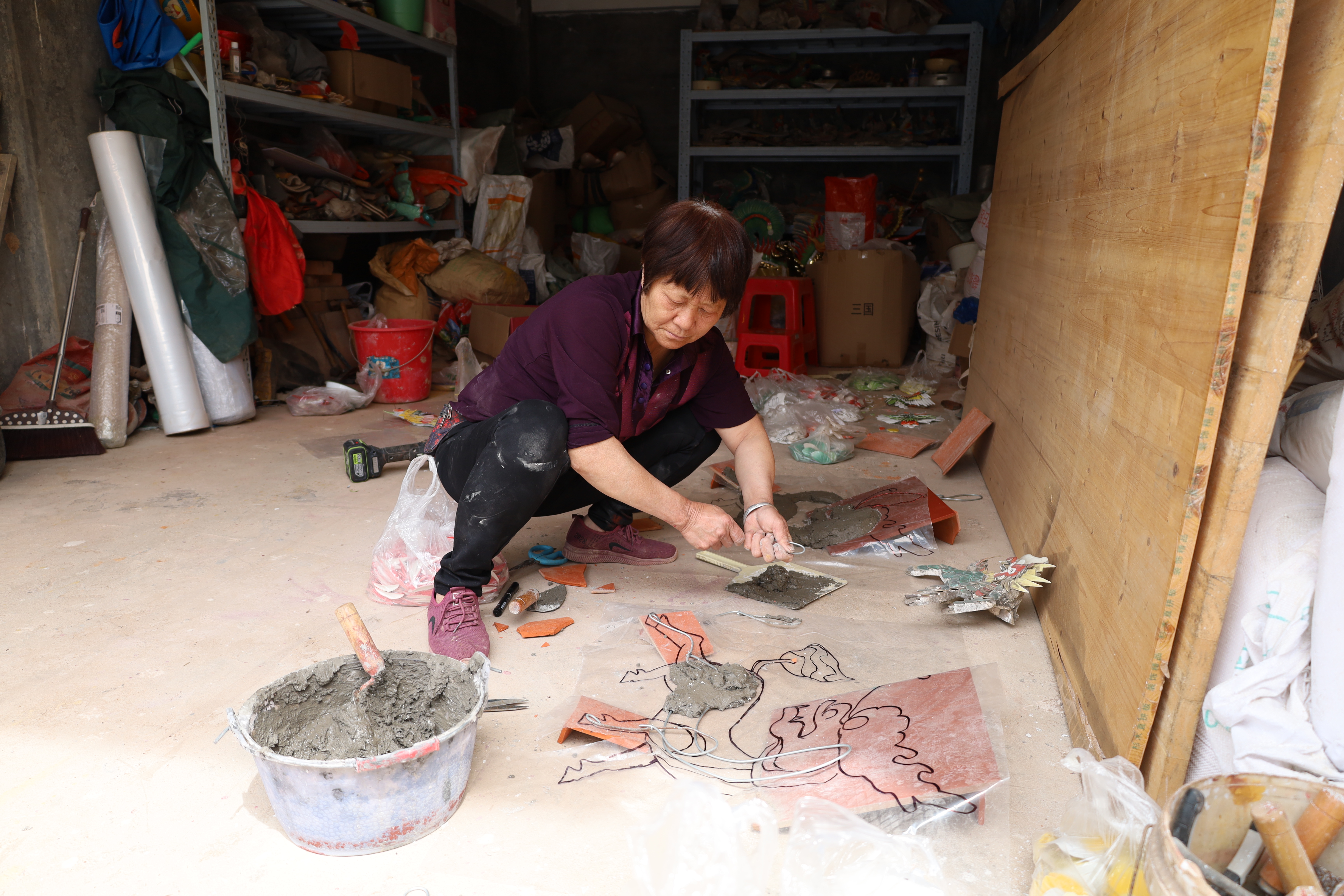 6.传承人:陈淮琴(技艺特长大木、剪瓷雕、彩绘);传承代数:第六代传人;师从关系:父传对象第五代传人陈江棍。