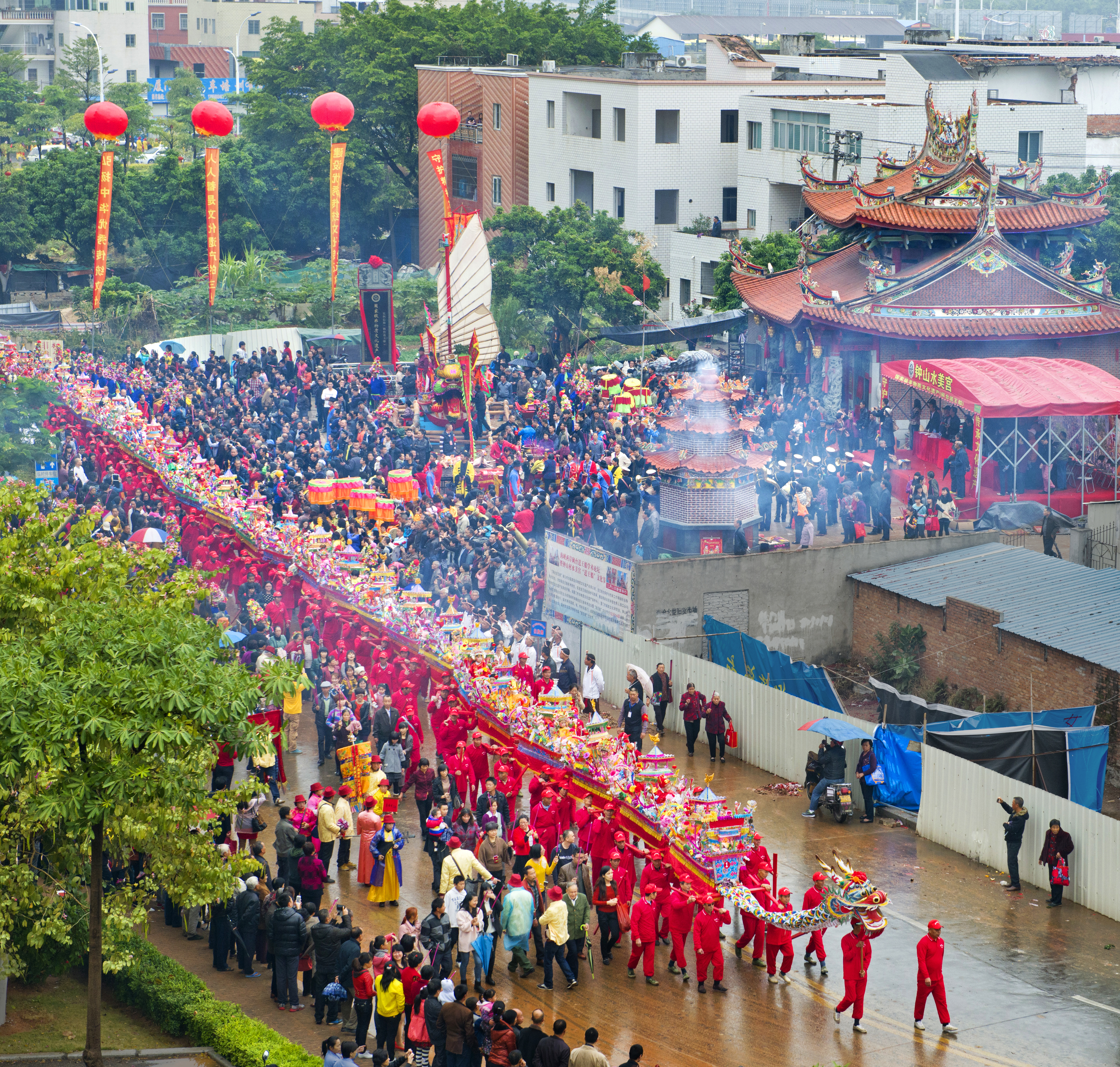 蜈蚣阁是闽台独特的民间游艺活动,旧时用于迎神赛会的化装游行,今为文艺踩街形式之一,广泛流传于厦门、泉州、漳州等闽南一带及台湾、金门地区。蜈蚣阁是艺阁的一种,又叫“装阁”“龙阁”“凤阁”,至迟在乾隆年间,就在厦门、漳州、泉州广为流传,后传播到台湾和南洋。
