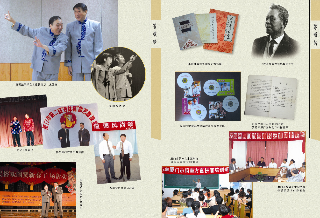 答嘴鼓是由两岸民间艺人在相互交流中共同创造、并为海峡两岸百姓所喜闻乐见的闽南民间曲艺形式。它又称为故事诗、诗故事或拍嘴古等。答嘴鼓是运用闽南话丰富多彩、生动活泼、诙谐风趣的词语、俚俗语和富有音乐美的闽南话语音,并吸取北方相声艺术中抖“包袱”与闽南戏曲“韦登[diN5] 笑科”(爆笑料)的一些手法,来敷演故事情节和刻画塑造人物形象,还严格要求对白的句式要押韵,以取得喜剧性的艺术效果。
