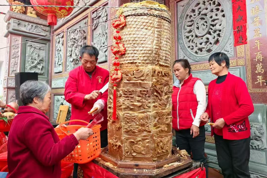 制作大笼甜粿,在每年的正月初九举办祭拜仪式,自清初一直延续到20世纪50年代初,后因种种原因该习俗一度消失。2010年间,偶然的机会在一村民家中发现一套仍旧保存完好的模板。经文史专家多次考证,现存的两套壹拾陆块模具,确为清代雕作。于是消失了60多年的敬天仪式在岗头重现。蒸做一笼大笼甜粿重量达700多斤,需要糯米粉432斤,蔗糖近300斤,用四口大鼎、八个大蒸笼同时开蒸。蒸笼里的甜粿蒸熟后,倒进这个由八块模板拼成的八卦形桶内,模板刻有各种各样的吉祥图案,每层约16至20厘米厚,每层铺上豆皮和擦上芝麻油,逐层加高,待其凝固后,拆去木模,顶端安置瑞狮,放在宗祠门廊,形成两笼非常壮观的大笼甜粿,四面八方的群众赶来观摩,同时也分享吃年糕、步步高的福运。