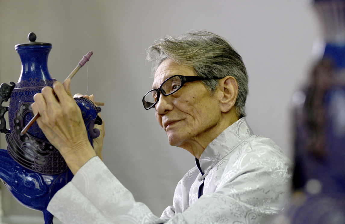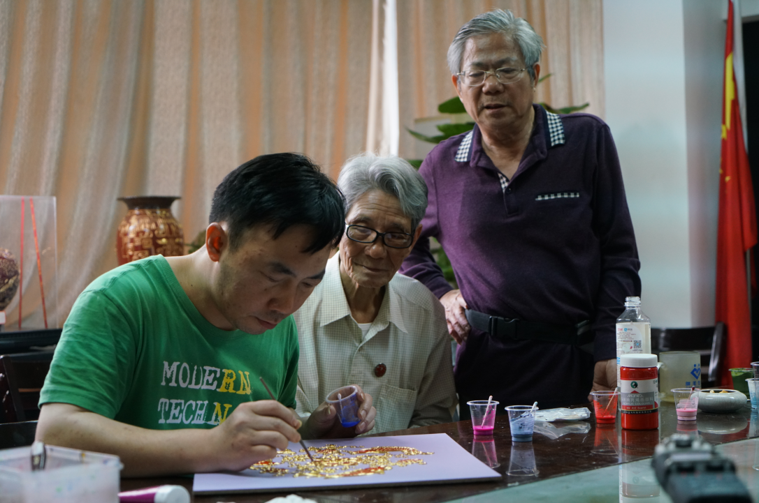 蔡水况是蔡氏漆线雕第十二代传人,1939年出生于厦门市翔安区马巷镇。蔡水况十几岁起跟随父亲蔡文沛学习漆线技艺,广泛涉猎多类漆艺,艺术视野日渐开阔。1956年,他开始做金木雕。多年来的耳濡目染,悉心钻研,使蔡水况逐步成为精通漆线雕技艺的艺人。1972年,为重振工艺美术,蔡水况积极开拓思路,对漆线雕这一古老传统模式进行一系列改革。他重新审视传统的图案、技艺,经过反复实验,重新构思设计,摆脱了前人一贯只把漆线雕用于表现神佛戏剧人物的规矩,独树一帜地将传统的各种吉祥纹样直接表现在瓷器上,开拓漆线雕新产品。1973年,蔡水况首创在瓷盘、瓷瓶上创作设计漆线雕获得成功。在当年的“广交会”上,漆线雕装饰的花瓶、瓷盘大受欢迎。在金木雕濒临绝境的时候,蔡水况让它起死回生,用最古老、最传统、最本土文化的龙凤牡丹等品种为漆线雕艺术找到一条生路。漆线的浮雕配合细线的装饰效果,金箔的喜气高贵和瓷器的滋润典雅,三者构成最佳的艺术组合,雅俗共赏,赢得了世人赞誉。蔡水况把原本只是依附在佛像神像、古装人物身上的漆线图案装饰工艺剥离下来,经过装饰和画面设计,独立配置,绽放新花,成为一种自由的艺术表现形式。这次创作的成功,标志着蔡氏漆线雕第三代新品种的诞生,使三百年的古老艺术从此获得新生与活力。而长期固守于神、佛的漆线装饰技艺在这次创新中脱颖而出,得以更加自由地发掘和展现。改良后的漆线雕作品题材因此更加丰富多样,作品也屡屡获奖,受到社会大众欢迎,使漆线雕艺术这朵奇葩越开越旺,在厦门,在闽南,乃至海内外到处盛开。1981年到1983年间,蔡水况受托重塑厦门南普陀寺山门的大型雕像四大金刚。他造访各地寺庙,广泛搜集资料,斟酌推敲,及至定稿,花费数月。在制作期间,蔡水况不避寒暑,不分昼夜,连续苦干,终于圆满完成任务。当四座巨大的金刚塑像完成之时,蔡水况亦感到耗尽了精力和体力,而落下疾病住院治疗。此时的蔡水况仍在思考:在艺术与人生之中,如何走出一条更具价值的道路。作为一个传统技艺的继承人,他从心底感觉到漆线雕这门技艺已是几经兴衰,搞不好是要失传的。1985年,蔡水况下定决心,趁着自己的脑力、体力、眼力都还健康,为漆线雕艺术作个总结,创作一套各方面都臻于完美的作品。他向工厂申请停薪留职,在家中狭小的阁楼里进行创作,几乎不与外界接触,一呆就是十年。他潜心深入,刻苦钻研,厚积薄发,发挥巨大的热情,兢兢业业地工作,把自己所知晓的漆线雕技艺在作品里充分展示出来。技艺、勇气、智慧和刻苦使蔡水况迎来了他创作生涯的又一个高峰。从1985年到1994年,蔡水况费尽心力,创作了《罗成夺魁》《波月洞悟空降妖》《华容道》《红楼梦》《叶公好龙》《还我河山》《民族英雄郑成功》《秦始皇》《西楚霸王》等十几件能体现其全部艺术功力和融合漆线雕所有技艺的作品,题材取自古代历史、小说、传说等。蔡水况力求表现的,是中华民族的崇高精神,是我们民族的美好心灵和崇高的品格;在形式上,他几乎将漆线雕艺术的所有技艺综合起来,坯体全部运用漆器脱胎技法,这在漆线雕技艺上尚属首创。其中《波月洞悟空降妖》《还我河山》两件作品被国家有关部门视为工艺美术珍品,收藏于中国工艺美术珍宝馆;《民族英雄郑成功》被福建省工艺美术珍品馆保留;2008年的新作《哪咤试法》《龙之魂》被中国国家博物馆收藏;此外,蔡水况的漆线雕作品还先后荣获中国工艺美术金奖四项、银奖五项。这些作品,无不凝聚着他的精力与心血,是他几十年来对非物质文化遗产传承的重大贡献。