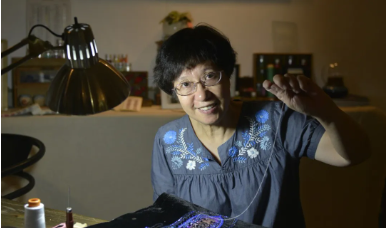 谢丽瑜1957年生于福建省厦门市,珠绣手工技艺省级非物质文化遗产代表性传承人。谢丽瑜于1975年招工进厦门珠绣拖鞋厂,从小拜老艺人为师,从学徒工做起,一直到珠绣设计。1980年代初考入福建工艺美院服装与刺绣设计专业,毕业后继续回厂担任设计工作。多年的实践和良好的美术功底,使她设计出来的珠绣作品格外出彩。1978年,她设计的“水晶”牌珠绣拖鞋标志沿用至今;1980年设计的珠拖鞋包装盒,作为首届全国包装优秀作品评比会福建省选送的两件参赛作品之一;从1975年进厂至1989年调离该厂期间,她单独或与同事共同设计的珠绣挂图、珠绣拖鞋获过全国工业品设计金奖、消费者信得过产品金奖、旅游产品创作奖等。上世纪七八十年代,是厦门珠绣工艺的鼎盛时期,当时人们穿的珠绣拖鞋、携带的坤包、女孩身上的绣花衣上绣着的亮丽图案,送给外国友人富丽堂皇的壁挂上,都镶绣着由五彩缤纷、华丽鲜艳的玻璃珠子组成的山水花鸟。这些精巧工艺绣成的工艺品,给社会生活增添了绚丽的色彩,为厦门市赢得了荣誉和名气。随着2006年开始的厦门市非物质文化遗产普查,对珠绣工艺情有独钟谢丽瑜尝试恢复抢救珠绣作品和珠绣手工技艺,她在筼筜湖边的工作室里,找来了原来厂里下岗的、退休闲居在家的几个当年的珠绣技艺骨干,一针针、一线线,开始编制起精巧的图画和心中的梦想。在她们的努力下,珠绣技艺在保留传统的基础上不断推陈出新,绣制手法日趋完善。珠绣产品采用闪亮夺目、五彩缤纷的玻璃珠子和电光胶片,运用凸绣、平绣、串绣、粒绣、乱针绣、竖直绣、叠片绣等传统的工艺手法,以针线为工绣制出浅浮雕式的图案。全珠图案构图严谨、密不容针;串珠图案优雅秀美、清新悦目。全珠是在画面上全部绣满色泽鲜艳的珠子和电光片,半珠是在各种质料(丝绒、平绒、罗缎、尼龙纲等)的画面上用玻璃珠、电光片绣成各种图案。图案大多取材于传统民间吉祥题材,如龙凤飞舞、双龙戏珠、牡丹引凤、荷花鸳鸯、孔雀开屏、狮子滚绣球等。她们巧妙地利用珠子和电光片闪烁发光的特质,熟练地运用多种绣法,把图案装饰得绚丽多姿、高雅华贵、造型优美。她们在创造珠绣挂件的图案色彩上,突破了以往对比鲜明的红、黄、绿等常色,出现了渐变色;图案上改变了龙凤、花鸟等民间吉祥题材唱主角的局面,引进了汉砖、青花瓷等更时尚的中国元素,融入居家装饰流行的几何抽象图案,使挂图上的图案有了新的拓展,使之更富魅力。