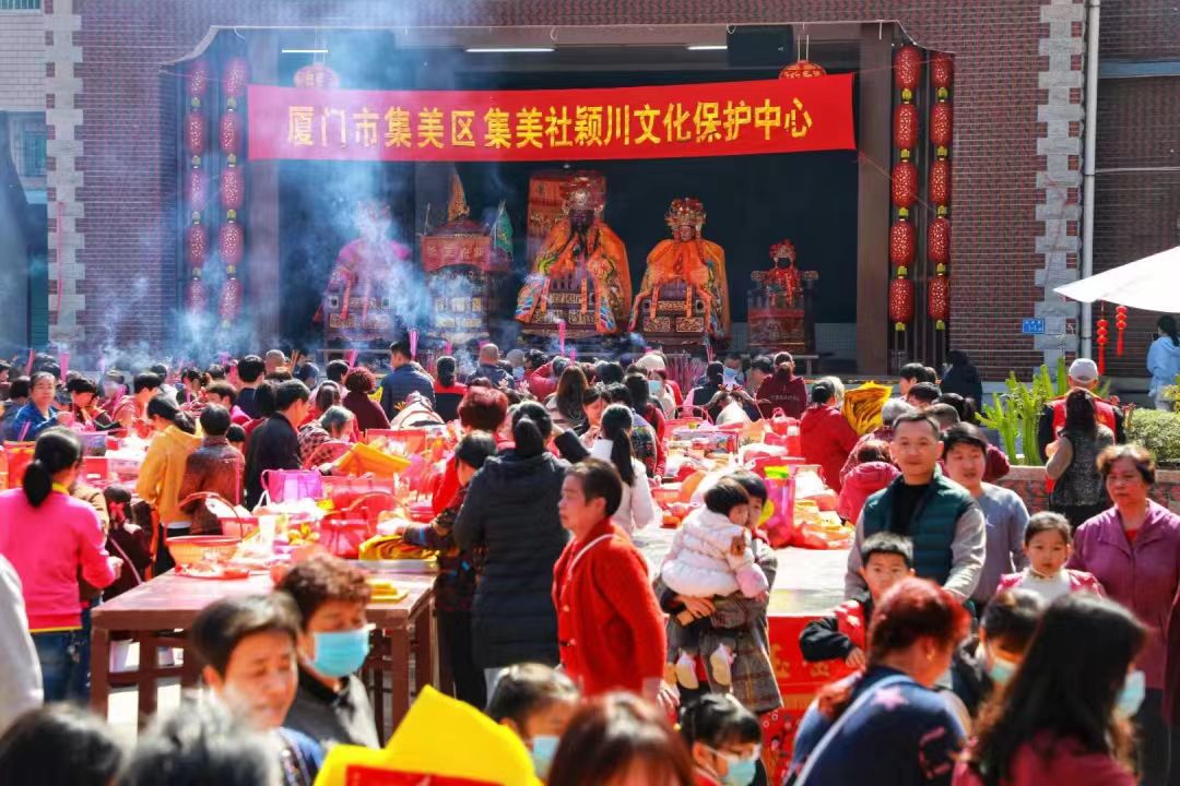 厦门市集美区集美社(集美大社)是陈嘉庚故里,其元宵庆典活动别具地域色彩,世代传承,至今已有七、八百年的历史。每年元宵这一天,为感恩王审知开发福建的功绩,发扬先祖陈文瑞(进士祖)为官清廉、重学爱民的品德,鼓励宗亲子弟学有所成、多出人才报效国家,集美大社的陈氏宗族和居民们举行盛大的祭祀典礼,祭祀贡献开闽王王审知、进士祖陈文瑞等先贤,开展各种富有闽南特色的民俗文体表演。街头艺阵表演结束后,人们抬着王审知、陈文瑞等五位先贤的神像,在鼓乐和鞭炮声中沿街转巷顺着固定的路线开始巡游,人们一路跟随,焚香祈福,队伍越来越长延绵数里,沿街住户和商户都兴高采烈开门迎神,称之为“刈香巡游”。每当集美社元宵祭祖,来自海外新加坡的陈氏族亲、台港澳乡亲以及侨眷侨属和集美社周边群众也会纷至沓来,其影响远播新加坡、台、港、澳等地的陈氏族亲、华人华侨,以及遍布世界各地的集美校友,寄托后人慎终追远、爱国爱乡的无限情怀。
