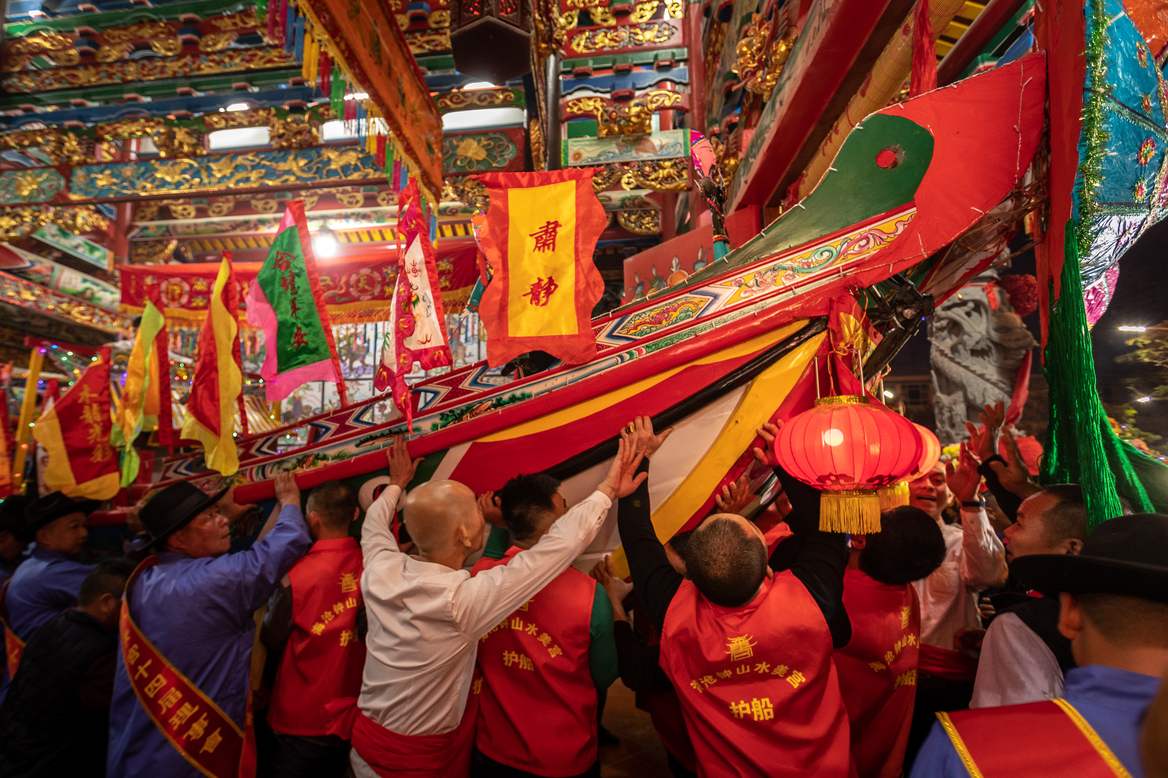 届时,人们在海边、滩地迎请王爷至宫庙或祠堂,用供品祭祀王爷;竖起灯篙召唤“好兄弟”,普度“好兄弟”。送王时,人们请王爷登上事先精心制备的王船(木质或纸质的船模),民众以各种艺阵开道,簇拥着王爷巡查社区四境,一路召请“好兄弟”登上王船,随王爷一同出海远行,继续代天巡狩的使命,济黎民百姓,保四方平安。因此,该项目被当地社区民众称为“做好事”。