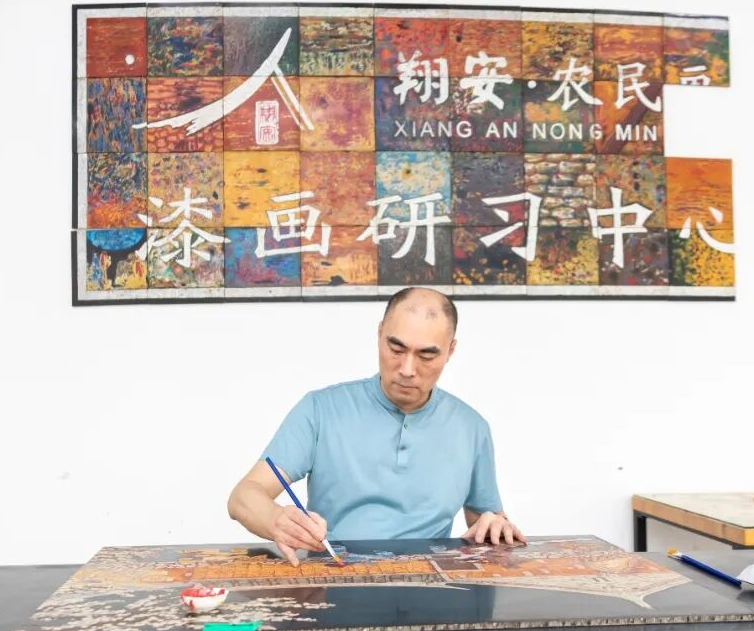 2016年,潘志坚把民间艺术与大漆独特的艺术语言进行融合,开 始农民画漆画创作。《演绎 · 乡愁》入选第十三届全国美展,《鼓舞丰 年》入选第五届全国漆画作品展,《车鼓公婆》获福建省第七届艺术节 民间传统艺术作品展优秀奖,《闽南记忆》获福建省第八届艺术节美术 书法优秀作品展优秀奖。《翔安宋江阵》被福建省美术馆收藏,《御前 清音》《村口故事》等多幅作品被福建省艺术馆收藏,《演绎 · 乡愁》 《车鼓公婆》被厦门市非遗中心、市美术馆收藏。