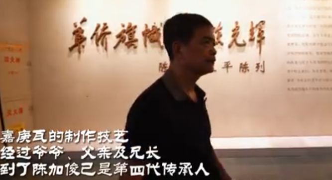 陈加俊是嘉庚瓦制作的第三代传人。1911年,陈嘉庚到龙海实地 考察时结识了当时从事砖瓦生产的陈加俊祖父陈元盛,陈嘉庚将生产瓦 片的工作交给了陈元盛。