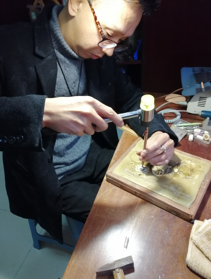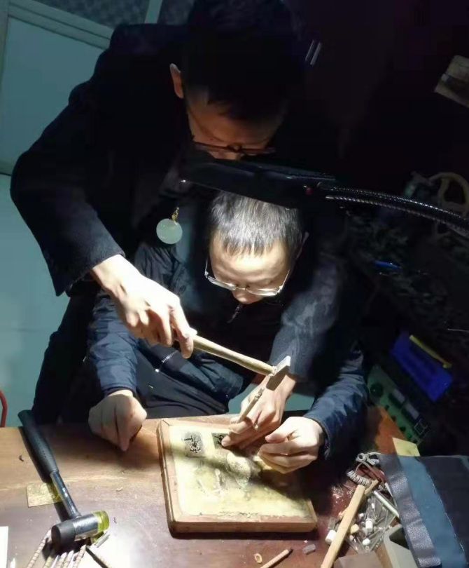 黄锡源出生于金银制作世家,祖上为金银技艺制作匠人,于清同治年间创立银号。黄锡源专注于闽南传统金银制作技艺研究长达二十多年,收集了约三百件实物作为研究资料。熟练掌握传统金银制作的工艺流程和錾刻技艺,系统把握闽南金银饰的造型布局特色,作品带有典型的闽南 特色和海洋文化特色。