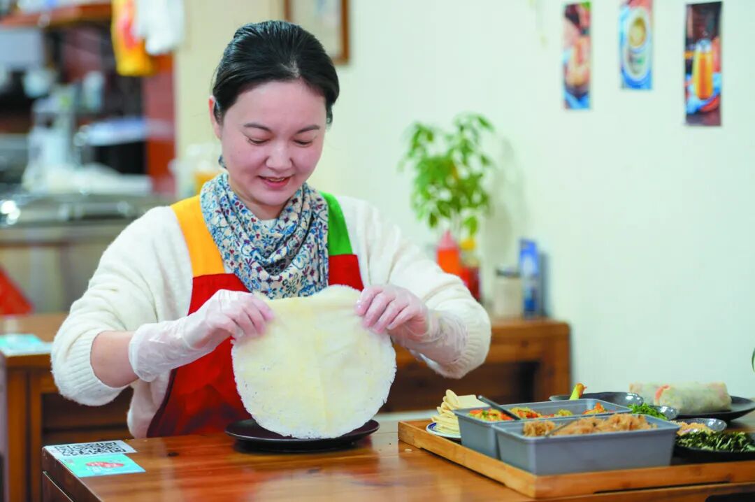 2021年至今,教授四位下岗女工掌握薄饼制作核心技术。