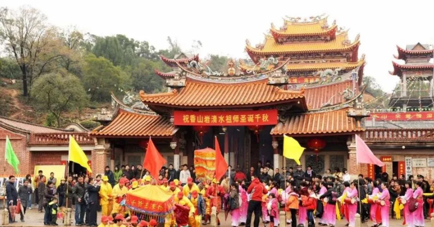 清水祖师(1045—1101)俗名陈荣祖,法号普足,封号“昭应”。据传生前长期驻锡香山岩寺,许多金门、台湾信众特地前来,请祖师消灾弥患治病。祖师有求必应,尊崇者如云。圆寂后,闽台地区乡民感其恩德,用香木雕塑大祖师神像,供奉于香山岩内,供人朝拜,祈求平安。为了纪念清水祖师,当地民众自发在每年正月初六清水祖师诞辰之日举办庙会活动,庙会从正月初六一直持续到正月初九