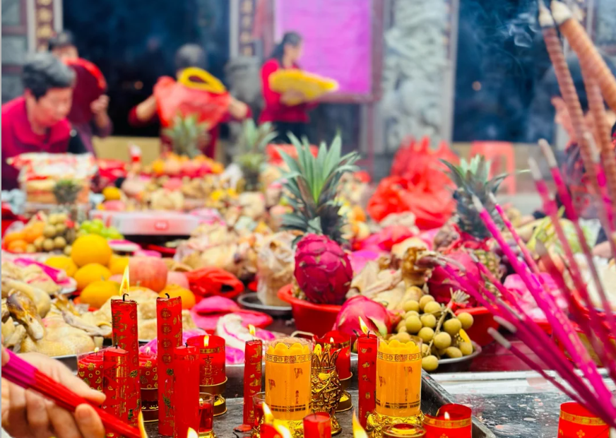 年初九“天公生”,民间要蒸龟、桃、牵、鱼、圆,即用糯米粉泥做成皮,馅为绿豆蓉、黑芝麻、花生酥。包好后,用雕有寿龟、寿桃、牵(钱串形)、鲤鱼图案的木模压印后蒸熟。圆是染红色的糯米包,也是用手工做成。
