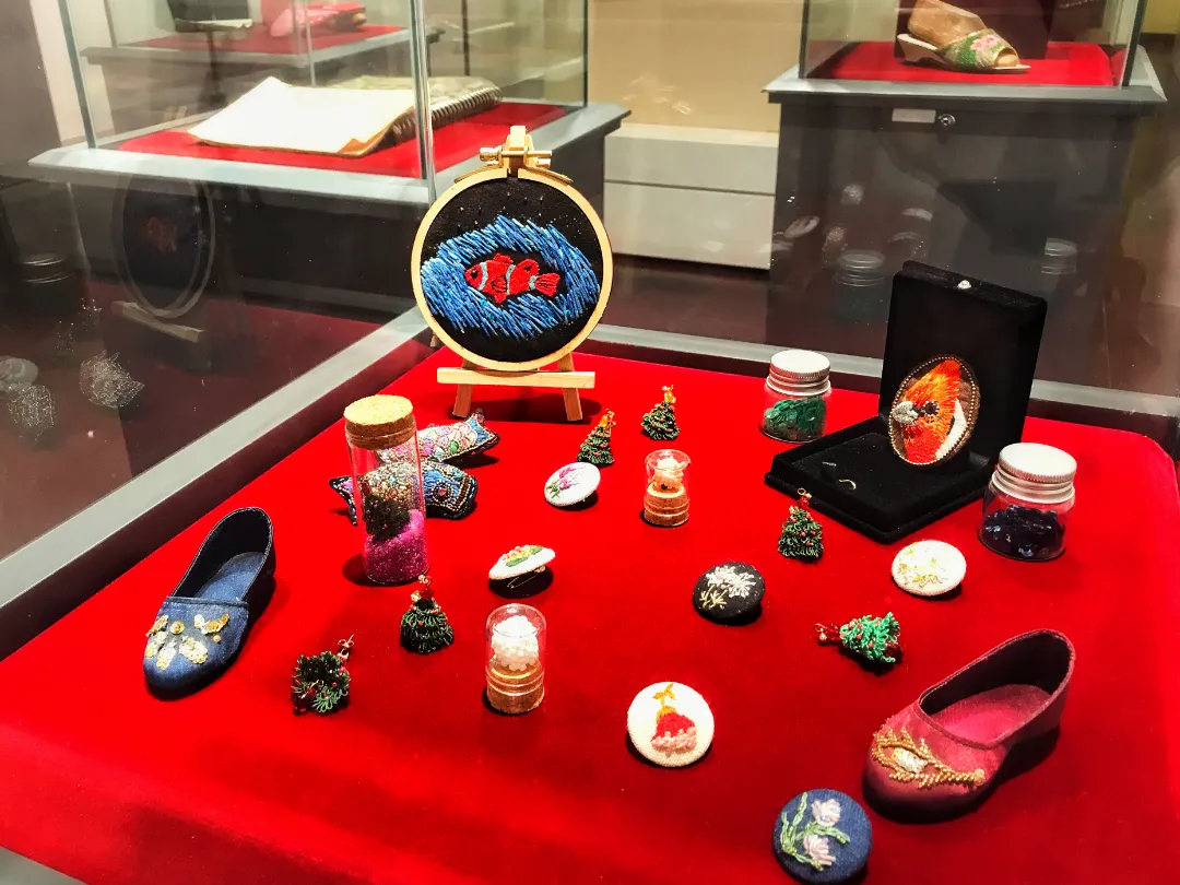 厦门珠绣起源于唐朝,鼎盛于明清时期,其设计精美,色彩对比强烈,经过专业绣工将多种色彩的珠粒经手工缝制而成,具有独特的装饰手法和艺术风格,珠光宝气,晶莹华丽、新颖别致、色彩明快,经光线折射有浮雕效果。该技艺在著名经典鼓浪屿风景名胜区分设两处固定展示场所,可串联在文旅精品路线中,并有传承人定期在展示场所进行非遗传承及研学活动,游客及市民可以参观体验非遗产品的制作过程,相关文创文旅纪念品也可灵活融入景区街区建设。