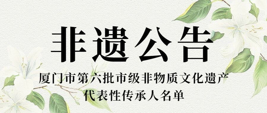 厦门市第六批市级非物质文化遗产代表性传承人名单