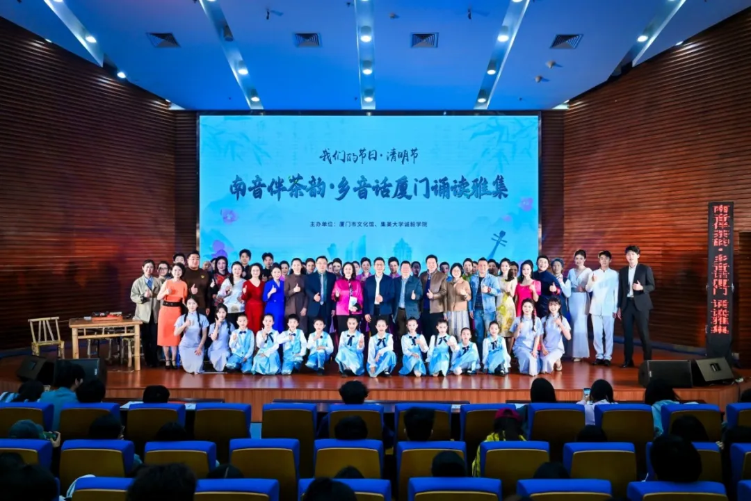 2025年4月2日,“南音伴茶韵·乡音话厦门”诵读雅集活动在集美大学诚毅学院成功举办。活动以闽南语与普通话交融的艺术形式呈现,通过南音、诗词朗诵、侨批文化演绎等多元节目进行展演,展现厦门独特的人文魅力。