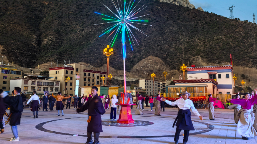 藏族同胞热情地拉着志愿者的手,跳起欢快的锅庄舞,旋转的裙摆、跃动的脚步,让高原的风都染上了笑意;志愿者们很快被热情感染,闽南木偶戏、闽南语歌曲、欢乐快板、歌仔戏声响起时,围观的群众自发打起拍子,汉藏双语的笑声、喝彩声交织,一曲闽南语歌曲《感谢你的爱》将“厦左一家亲”的情谊,融进了温暖的夜色里。