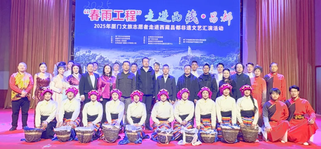 为深入学习贯彻习近平新时代中国特色社会主义思想,全面贯彻党的二十大和二十届二中、三中全会精神,贯彻落实党中央关于对口援藏工作的战略部署,根据文化和旅游部、国家民委关于实施“春雨工程”——文化和旅游志愿服务边疆行计划,2025年6月4日至7日,由厦门市文化和旅游局、昌都市文化和旅游局、左贡县人民政府、左贡县厦门援藏工作领导小组共同主办,左贡县文化和旅游局、厦门市文化馆、集美区文化和旅游局、集美区文化体育事业服务发展中心共同承办的2025年“春雨工程”——厦门文旅志愿者走进西藏昌都非遗文艺汇演启动,活动将厦门优质文化资源与昌都特色民族文化深度融合,促进两地各民族交往交流交融,谱写民族团结进步新篇章。