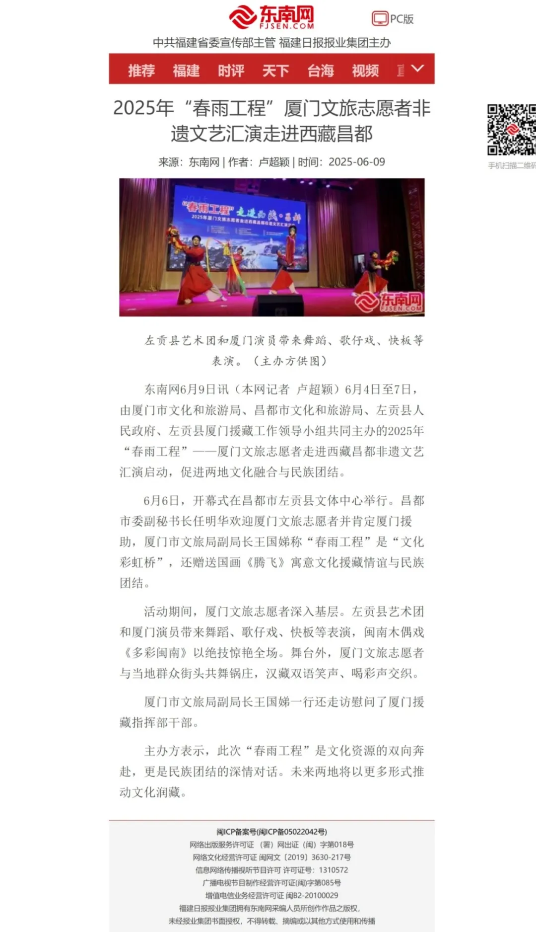 01文化新闻 | 2025年“春雨工程”厦门文旅志愿者非遗文艺汇演走进西藏昌都