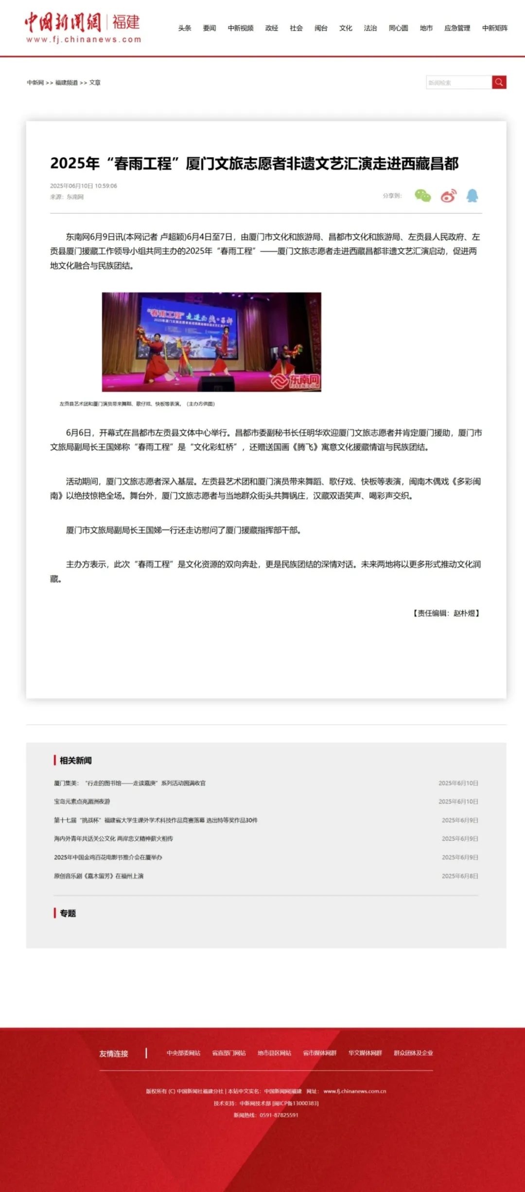 此次活动获学习强国、中新网、腾讯新闻、百度APP、福建台融媒体中心、东南网、厦门日报、厦门网、海峡文旅、左贡发布等主流媒体高度聚焦,通过专题报道、视频等形式广泛传播,成为文化润藏促进民族团结、铸牢中华民族共同体意识的成功实践。
