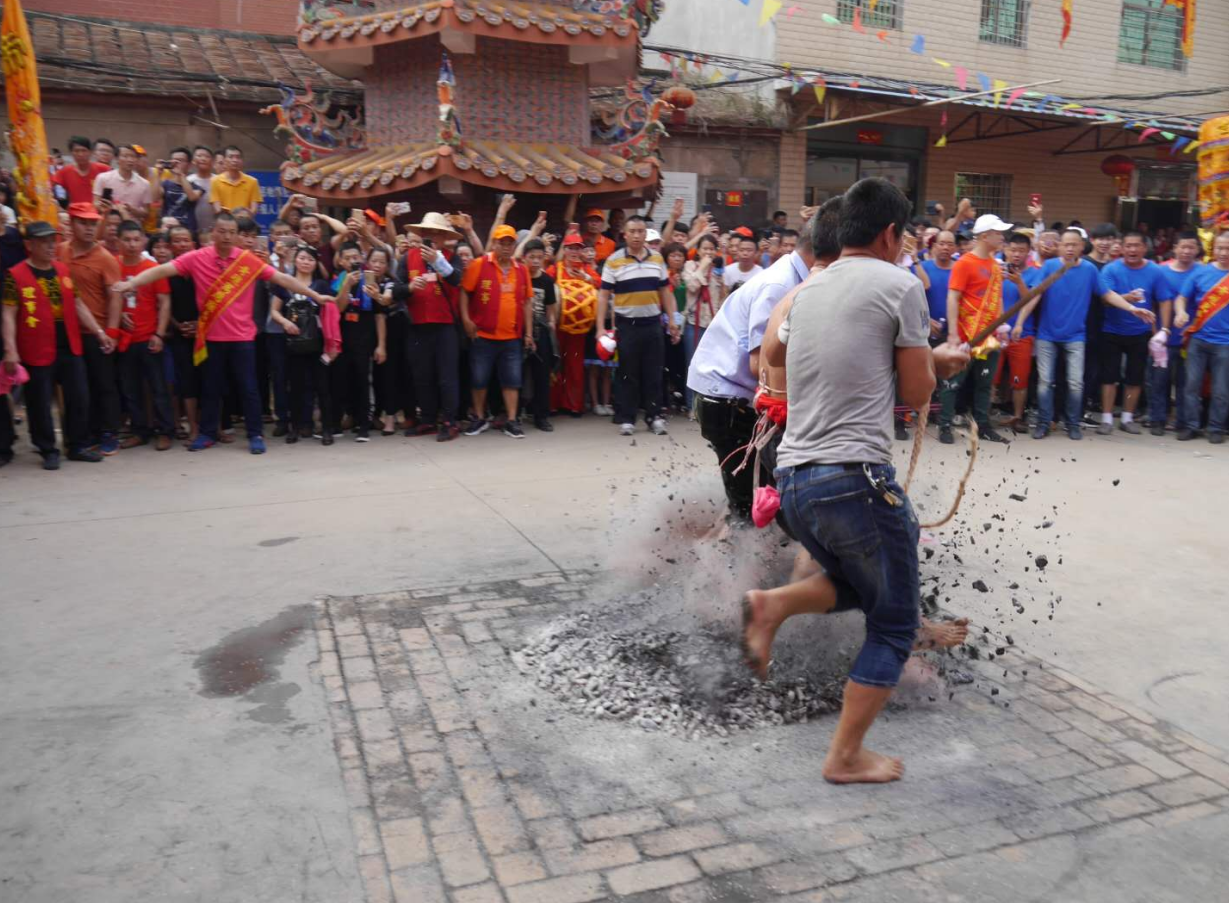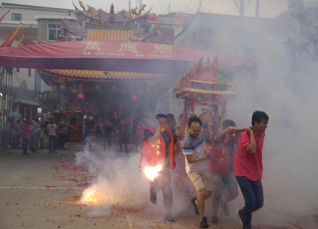寒单爷习俗是海沧区青礁村一项独特的民俗活动。通常是在每年的农历三月初九,寒单爷绕境巡安的时候举行。庙会当天,轿夫们用銮轿将寒单爷神像抬出来巡境,轿夫们赤裸双脚,踩过燃烧着的火炭。巡境后,轿夫们抬着寒单爷神像,在庙埕上15米长的炮仗中来回奔跑、跳跃,承受来自四面八方信众掷来爆竹的连番轰炸,场面十分热烈。