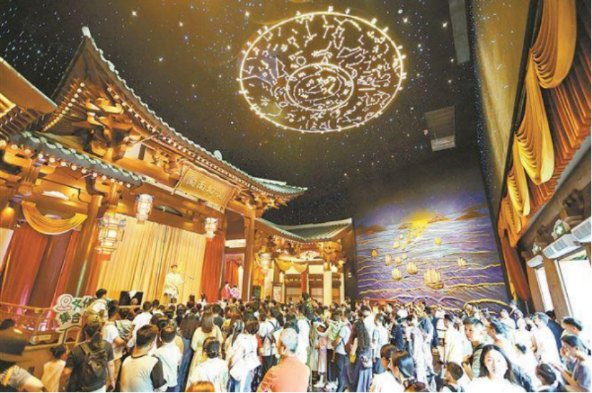 非遗已成为厦门文旅市场的“吸睛密码”。图为国庆中秋假期,市民游客在“屿见闽南·时光幻境”景区游玩。(记者 陈立新 摄)