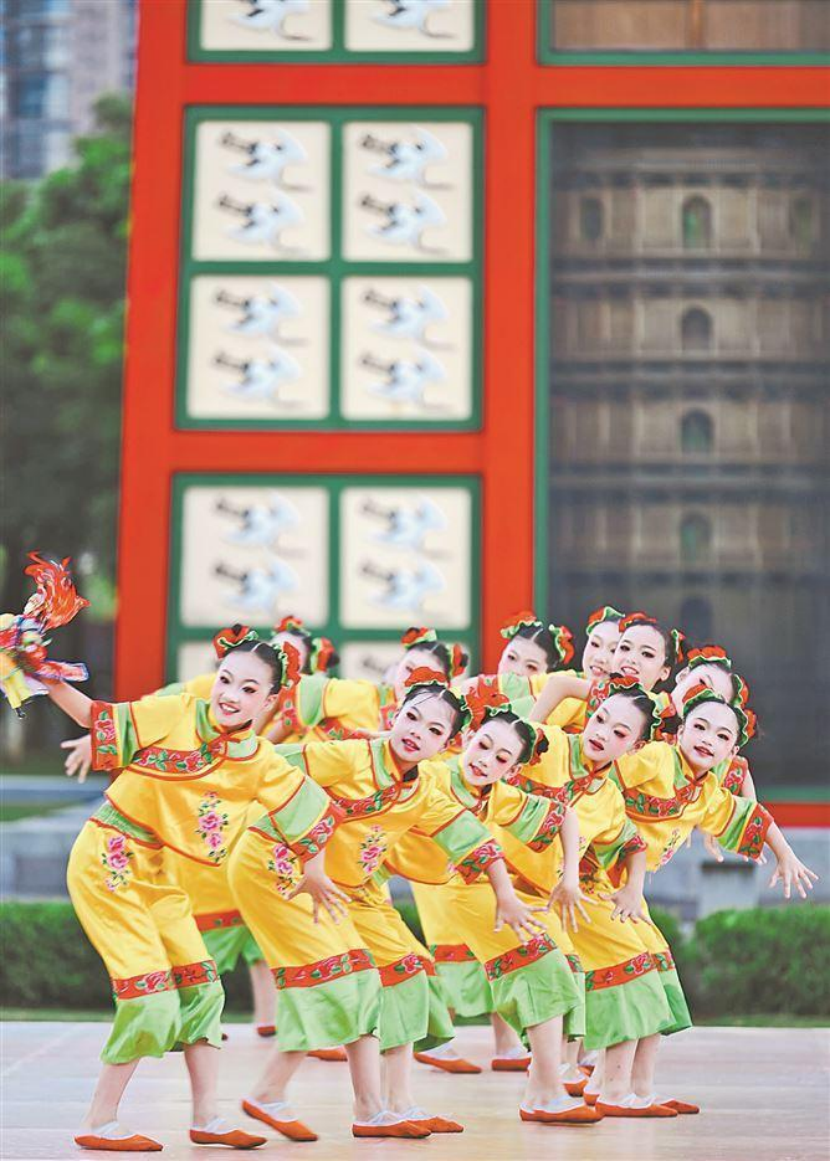 非遗精品节目展演环节,同安区第一实验小学学生表演舞蹈《偶趣》。