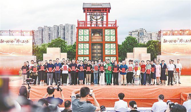 千年智慧,薪火绵延。古老技艺,代代接力。活动启动后,主办方为13名省级和57名市级非遗代表性传承人颁发了证书。颁发证书过程中,舞蹈表演《偶趣》、五祖拳串演《五祖雄风》以及歌仔戏《梨园传承》等节目及非遗表演穿插其间,演员以及非遗大师们的精彩表演,赢得阵阵掌声与喝彩。
