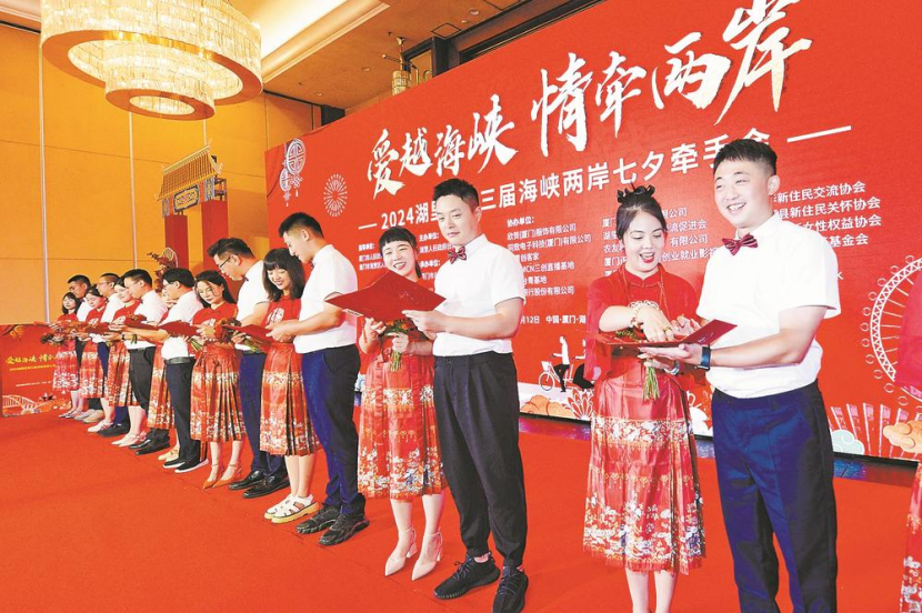 湖里区台办主任方旭明表示,湖里区连续3年举办七夕牵手会,得到很多两岸新人的肯定,吸引了更多的关注。这说明中华民族的传统节日对两岸婚姻家庭越来越有吸引力。