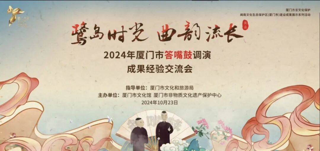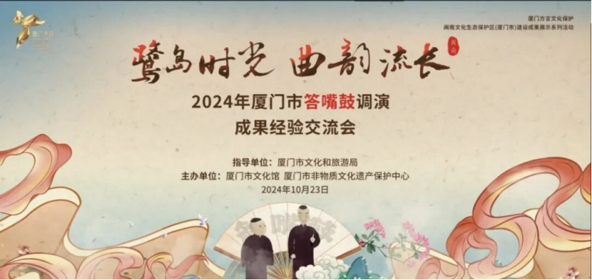 2024年10月23日,由厦门市文化和旅游局指导,厦门市文化馆、厦门市非物质文化遗产保护中心主办的“鹭岛时光 曲韵流长”2024年厦门市答嘴鼓调演成果经验交流会在惠和石文化园举办。现场有专家学者、答嘴鼓项目代表性传承人以及答嘴鼓爱好者近三十人参加,共同回顾了近期举行的答嘴鼓调演活动,并就演出中的表现和剧本创作进行了深入的分析与讨论。与会者积极发言,提出了许多建设性的意见和建议,为答嘴鼓的未来发展提供了宝贵的思路。