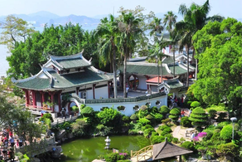 菽庄花园:菽庄花园位于鼓浪屿东南海滨,建于1913年。原为台湾富商林尔嘉私人花园。1956年园主将此园献给国家。菽庄花园背倚晃岩,面临大海,东邻观海园,西眺港仔后。该园以布局见长,以借景取胜,运用藏、借、巧的园林设计艺术手法,使园林与自然景物和谐一致,产生出步移景异的景观效果。全园分为藏海园、补山园两大部分,各造五景。藏海五景为眉寿堂、壬秋阁、真率亭、四十四桥、招凉亭;补山五景为顽石山房、十二洞天, 亦爱吾庐、听潮楼、小兰亭。