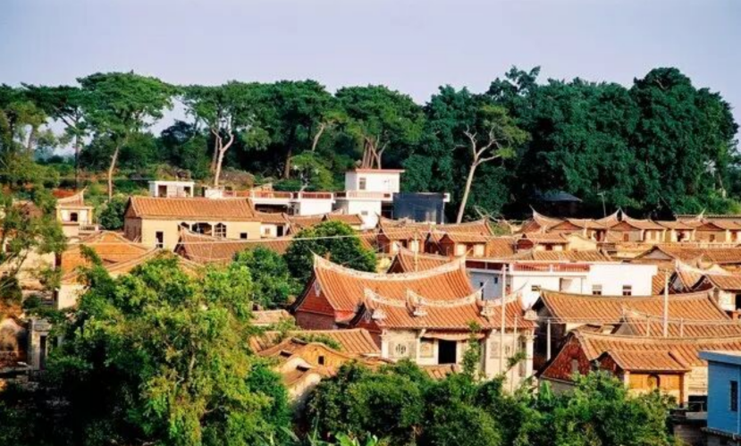 整齐的红砖瓦片精致的阁脚楼灵巧的后尾门高昂的古树在村口耸立不远处传来悠扬的戏曲歌声......