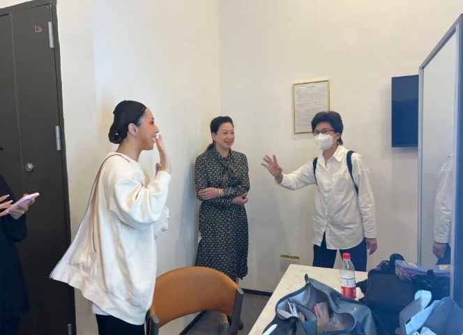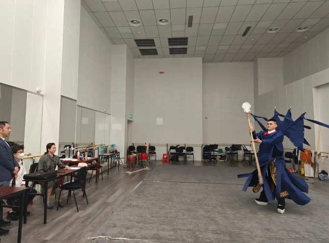 随后,剧团团长吴晶晶带领同仁们参观四楼的排练厅。我团青年演员陈耀峰正好在排练厅里练功,便为大家进行了一段即兴表演。他的表演和练功的积极性都受到了大家的肯定。