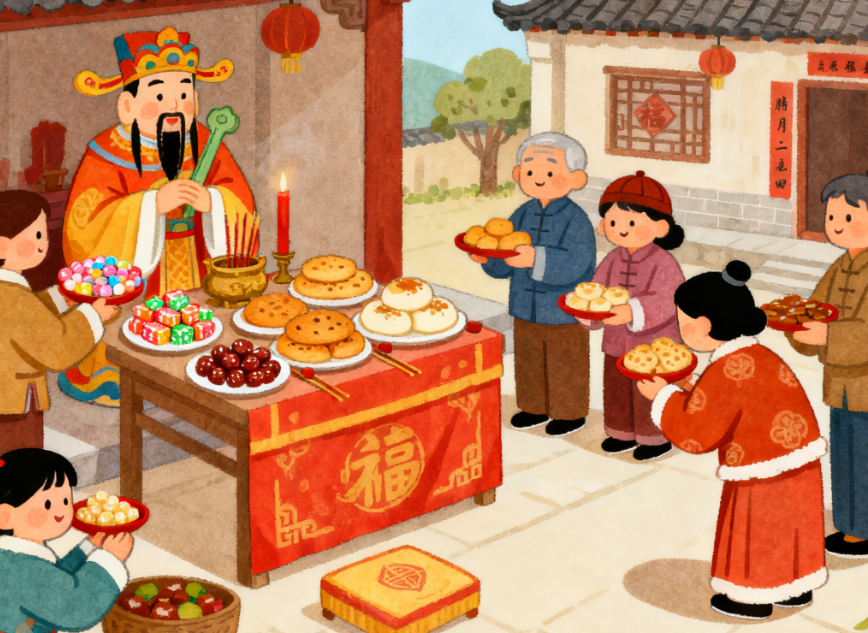 •送神:一早需备办牲礼、烧金纸、放鞭炮,送神仙上天;特别要烧用黄纸剪成的 “神马”,供神仙骑乘。部分人家会在腊月二十三晚上摆好供品,待子时一到便放炮烧纸,让神仙尽早上天 —— 一来可避免神明暗中监督,行事需格外谨慎;二来腊月二十四还是 “清尘” 之日。