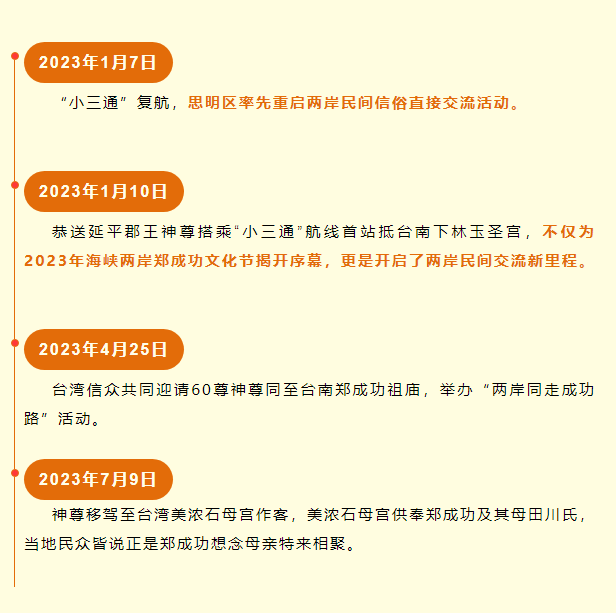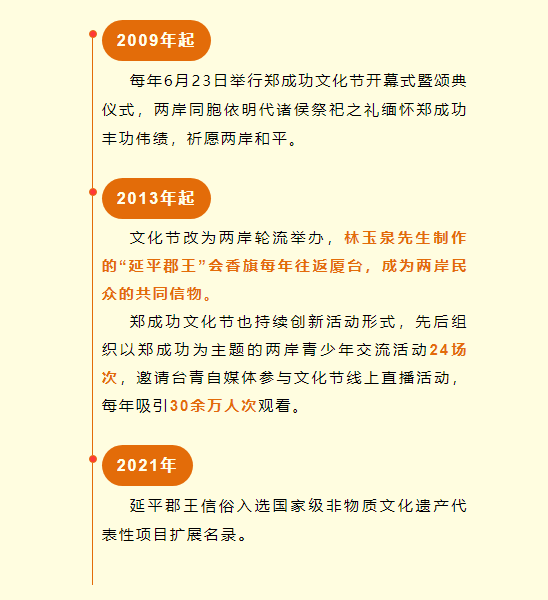 据了解,明年正值郑成功诞辰400周年,两岸同胞正计划共同推进延平郡王信俗溯源之旅。