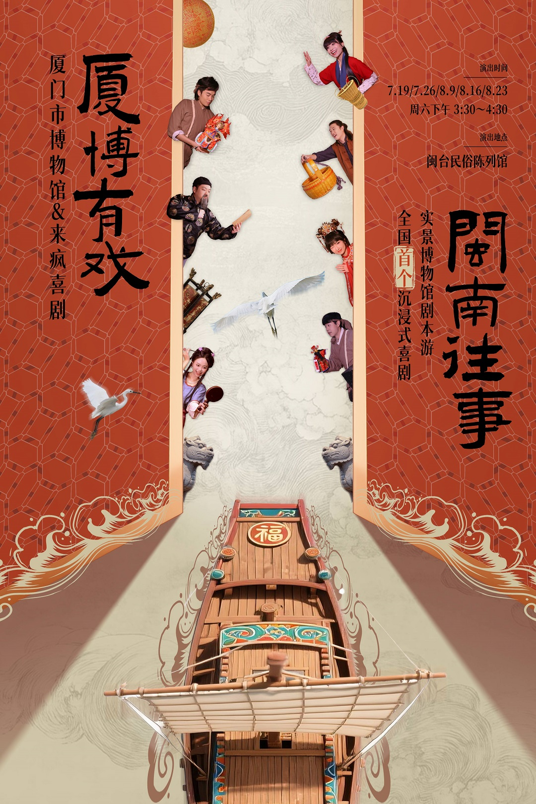 项目自7月19日首演以来反响热烈,首周预约爆满,现场观众超500人,平均停留时间延长至2个多小时,获福建日报、厦门日报等14家省市媒体报道。后续演出场次为7月26日、8月9日、8月16日、8月23日(每周六15:30-16:30),国庆期间场次待定,地点在厦门市博物馆二楼闽台历史陈列馆。公众可关注厦门市博物馆官方微信公众号,后台回复“看戏”登录预约小程序预约参与。