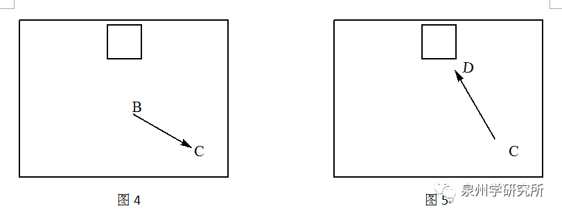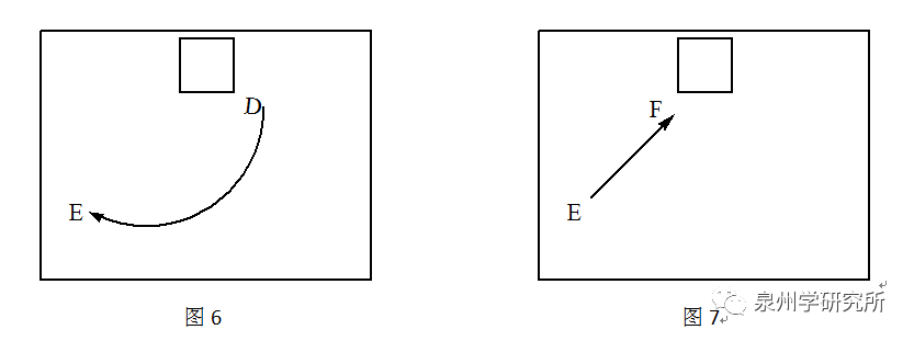 图4从台中央(B)走至文边外角(C)处,三甩奏板,第一甩寓意“玉如意”,第二甩寓意“升官”(因官员上朝才拿奏板);第三甩寓意“净秽”(甩掉一切诽谤、污蔑等晦气)。
