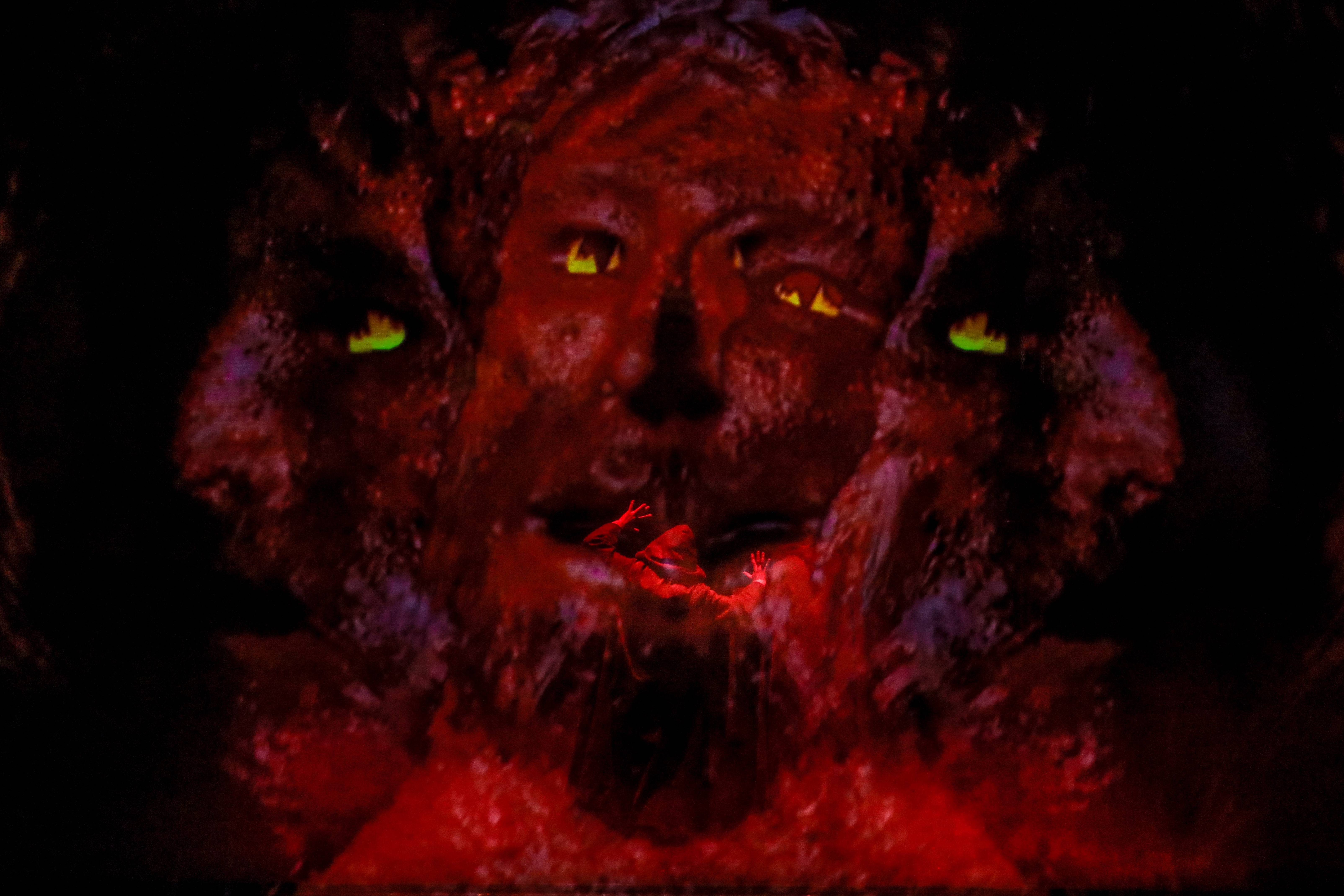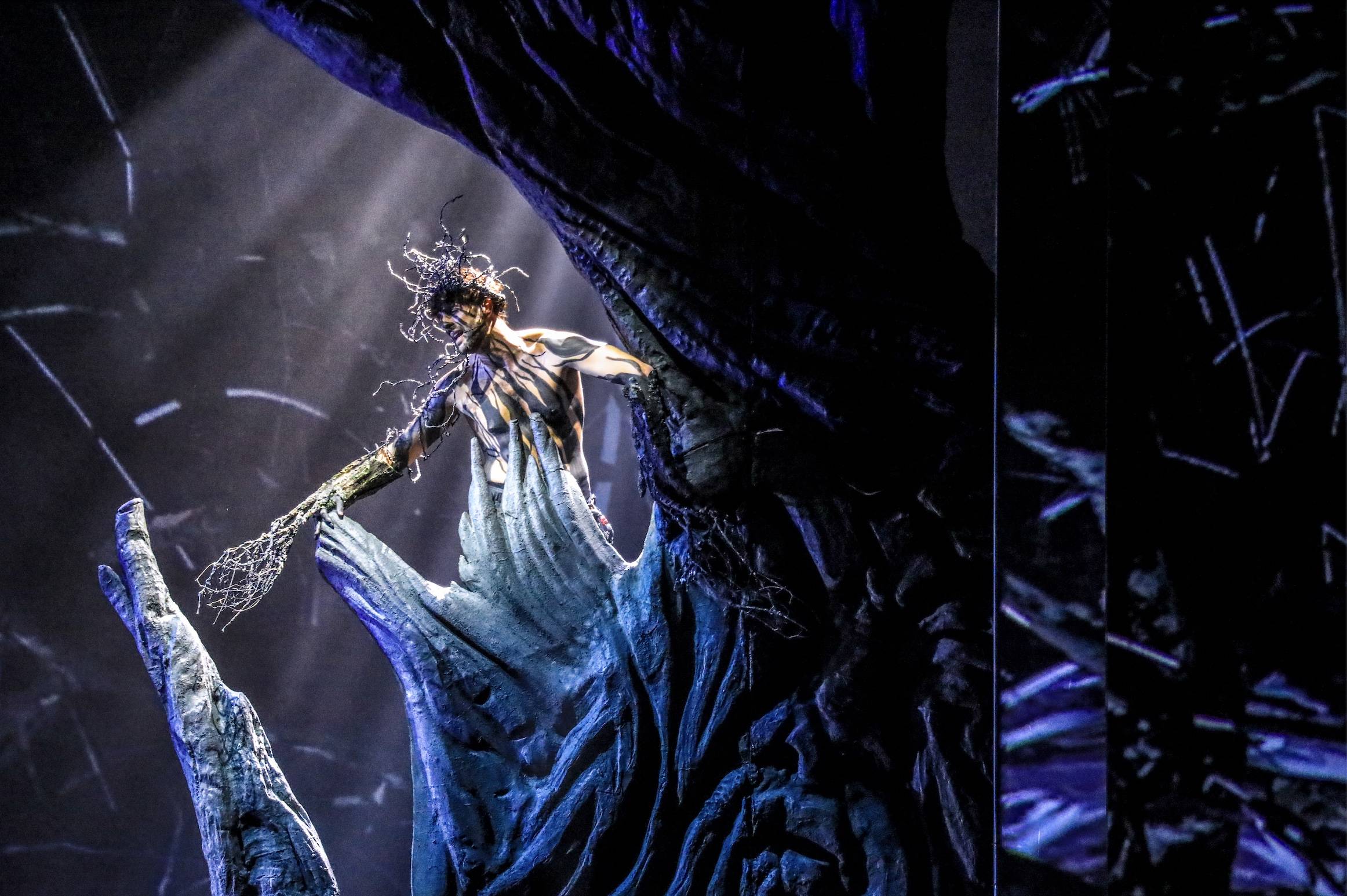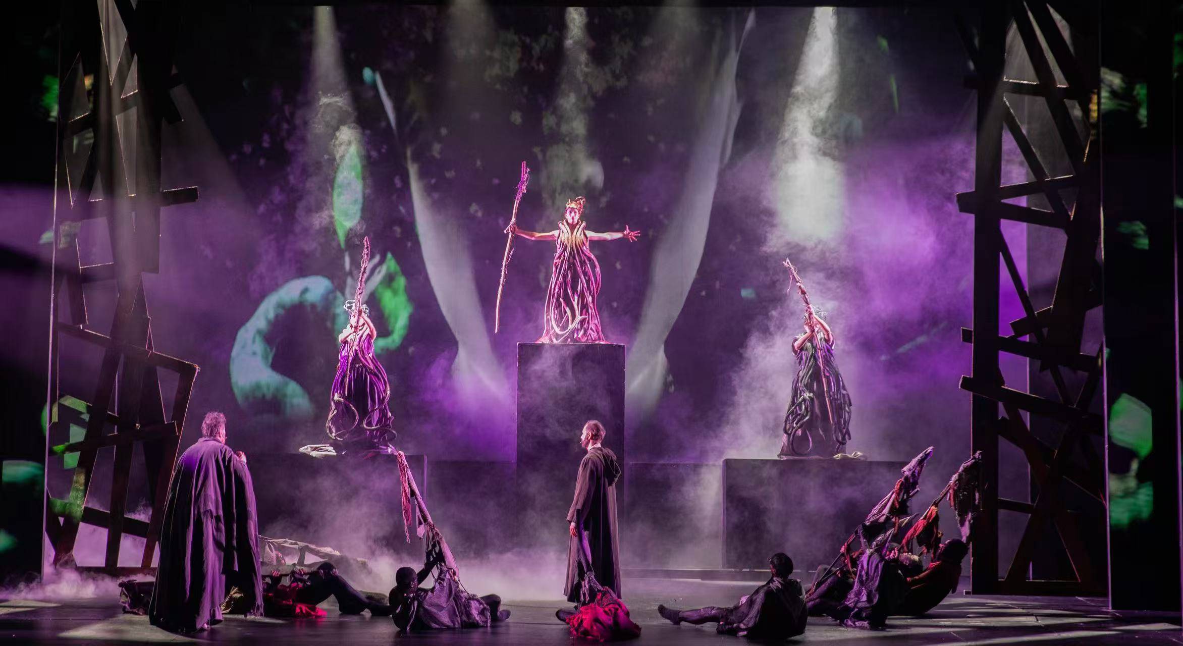 《神曲》的舞台设计不同于传统的布景,通过精心设计的机械装置与3D动态投影相结合,使得舞台空间不断变化,伴随着音效与灯光的变化,形成震撼的视觉冲击,令观众仿佛置身一座流动的剧场。团队更准备了逾两百套手工刺绣的中世纪服装与精致道具,与投影完美呼应,将中世纪的典雅与神话的奇幻完美结合,让每一个角色都仿佛从历史的画卷中走出,展现出独特的魅力。
