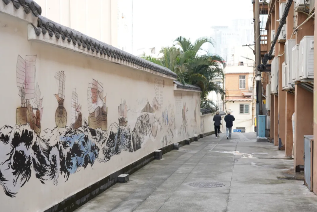 相传明末郑成功屯兵厦门鼓浪屿,前往文圃山水操台观练水师,常策马经过的路,得名“小走马路”。沿此路前行,你会看到墙上以彩绘壁画的形式记录了郑成功的宏图伟业。