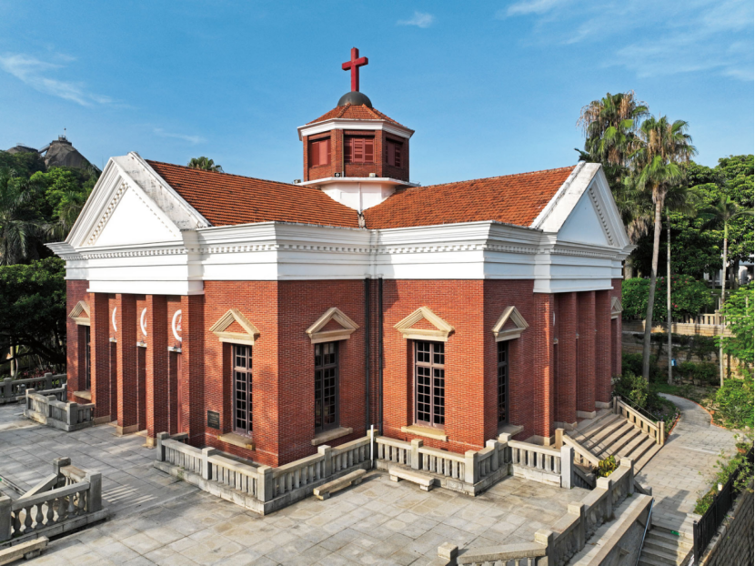 鼓浪屿天主堂位于厦门市思明区鹿礁路34号,建于1917年,为典型的哥特式建筑,由西班牙建筑师设计。教堂坐西北、朝东南,面宽10.7米,进深28.3米,建筑面积232平方米,砖石结构,平面布局前部为方形、后部为半圆形。