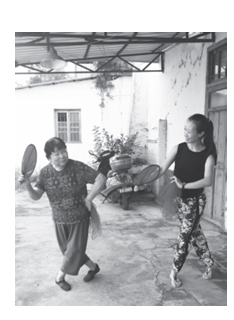 (左)图1 笔者跟随传承人卓来治(左)学习车鼓弄