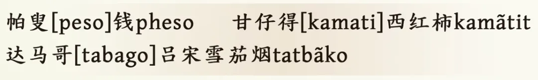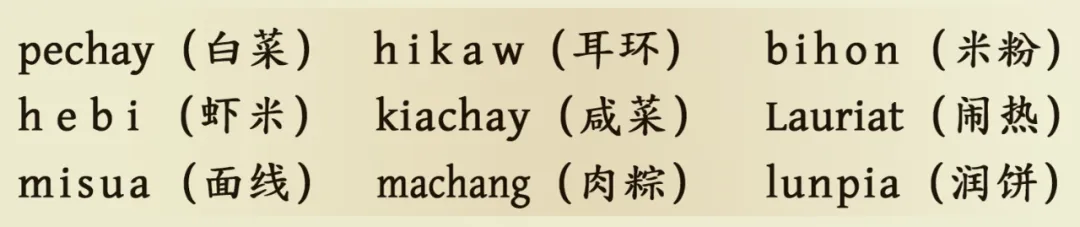 说明泉州与菲律宾、与中国台湾关系之密切。在菲律宾的他加禄语(Tagalog)中,有许多闽南语借词。例如:
