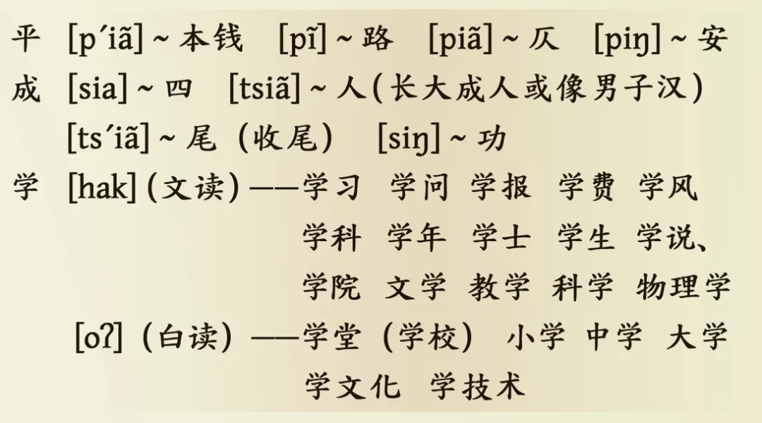 我们看看闽南话的“下”:闽南话白读音读[ke22](“悬下”),即“高低”的“低”,是秦汉音。文读音有三:读[e22](“顶下”),即“上下”的“下”;读[he22](“下愿”),意如“许愿”的“许”,是南朝和隋唐音;读[ha22](“天下”),即“天下”的“下”,是宋元音。又如:
