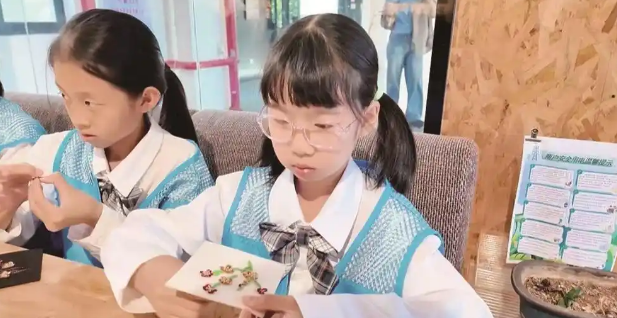完成作品的那一刻,孩子们脸上洋溢着满满的成就感。“原来珠绣这么考验耐心,老师们数十年传承,坚持下来太不容易了!”一个扎着马尾辫的小姑娘捧着自己绣的“秋分”图案认真地说:“我从老师们身上学到了坚持不懈的精神,今后不管是学习还是做其他事情,都要像创作珠绣一样,一步一个脚印做到最好。”另一个男孩则兴奋地分享:“以前只在博物馆见过珠绣,今天亲手做才发现,每一颗珠子都藏着学问,这种传统文化太酷了!”