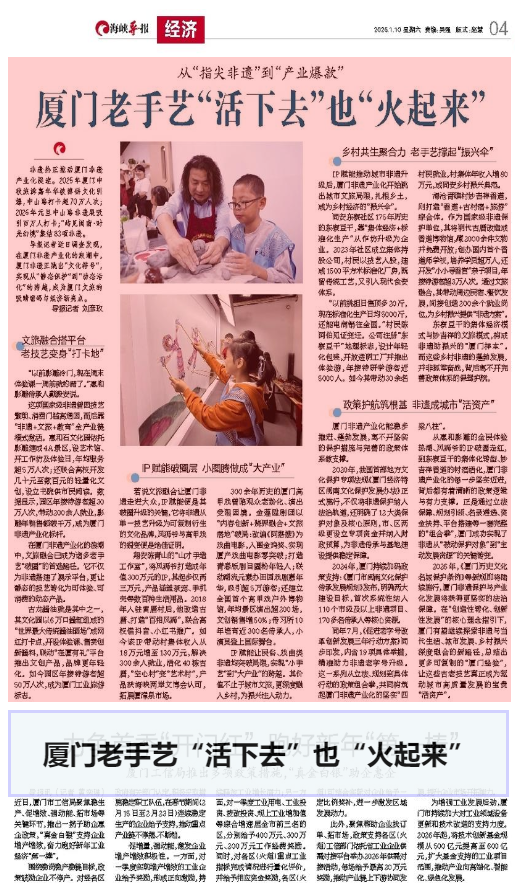 同年7月,《促进老字号改革创新发展三年行动方案》同步印发,内含19项具体举措,精准助力非遗老字号升级。这一系列从立法、规划到具体行动的政策组合拳,共同构筑起厦门非遗产业化的坚实“四梁八柱”。