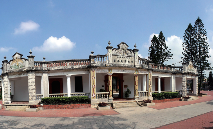 金水国小由水头乡侨集资于1932年兴建,建筑本体面积达631平方米,传统书院采用“回”字型的平面格局,俗称番仔厝的类型,是当时金门最新式及规模最大的洋楼小学。