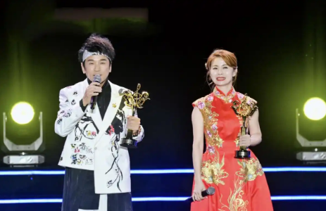 金曲奖最佳女歌手获得者林姗(中国台湾)最佳男歌手获得者黄一飞(马来西亚)。(供图)