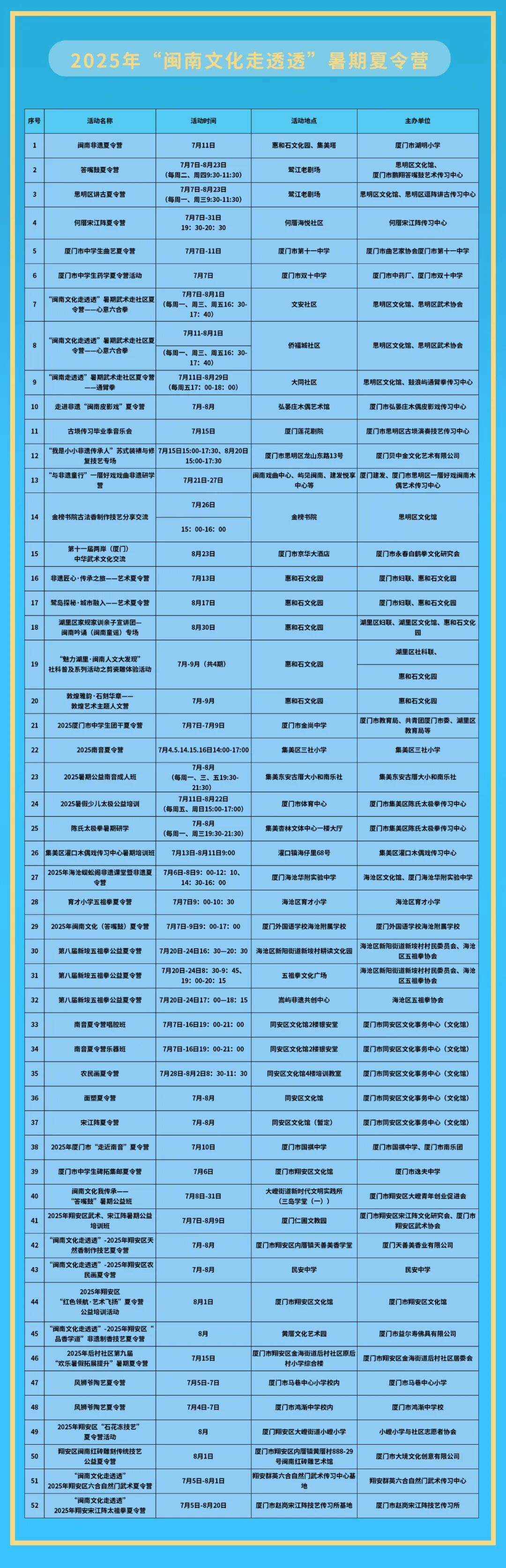 作为厦门文化圈常年霸屏的“顶流IP”,这个“闽南文化走透透”根本就是为暑假量身定做的“快乐充电站”,把闽南文化揉进吃喝玩乐里沉浸式体验,分分钟让你从“文化小白”变身能聊南音、能认古厝的“闽南通”,底蕴值像坐火箭一样往上飙!